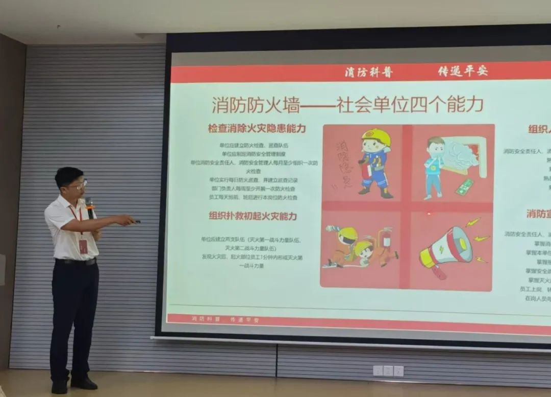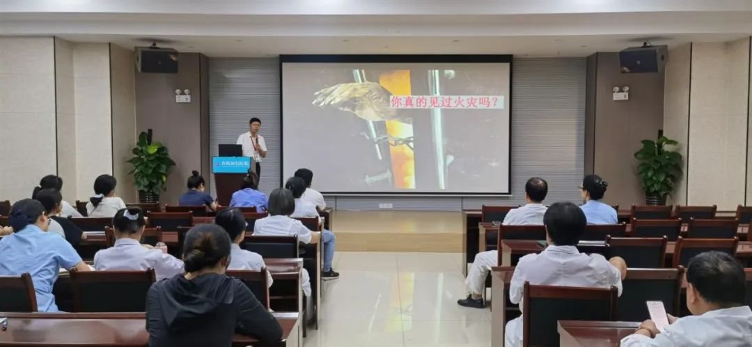 培训第一阶段在医院一楼会议室举行。讲师结合近年来发生的典型火灾案例,围绕电气火灾、厨房起火、电动车充电等常见风险点,讲解了日常防范知识和应急处理方法。同时,重点介绍了初期火灾扑救、人员疏散与逃生、报警流程等基本要点,增强了职工对火灾危害的直观认识。