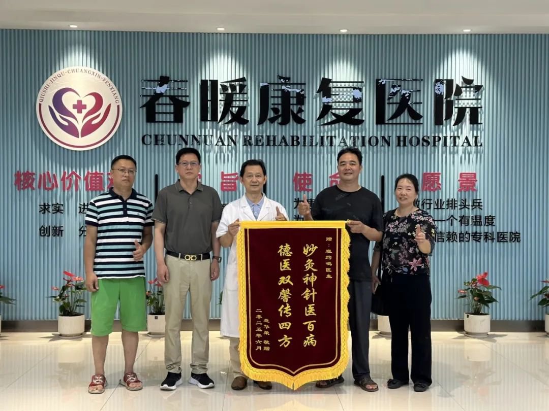在接受锦旗后班灼鸣医生表示:“这面锦旗是鼓励也是责任,感谢患者的信任,也感谢南宁春暖康复医院为中医康复提供的广阔平台。未来我会继续努力,不负重托。”