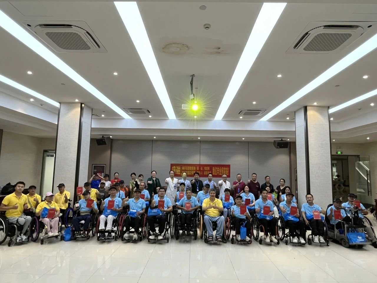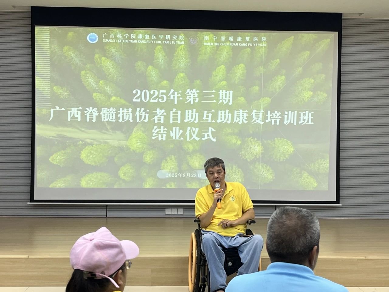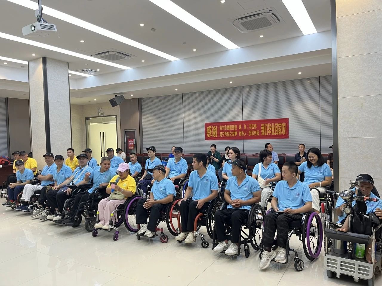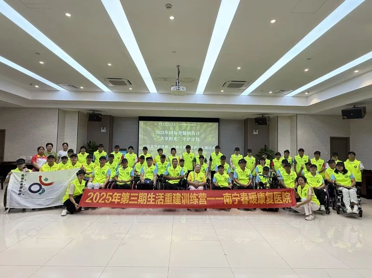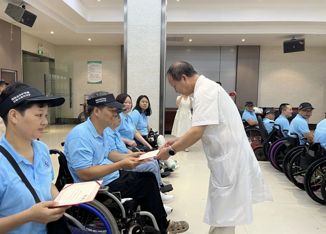 2025年8月23日上午10:00-11:30,南宁春暖康复医院一楼多功能会议室举行了第三期脊髓损伤者自助互助培训班结业仪式,为期21天的康复培训项目在庄重而温馨的氛围中圆满落幕。院领导、培训教师、全体学员及部分家属代表共同出席了本次活动。