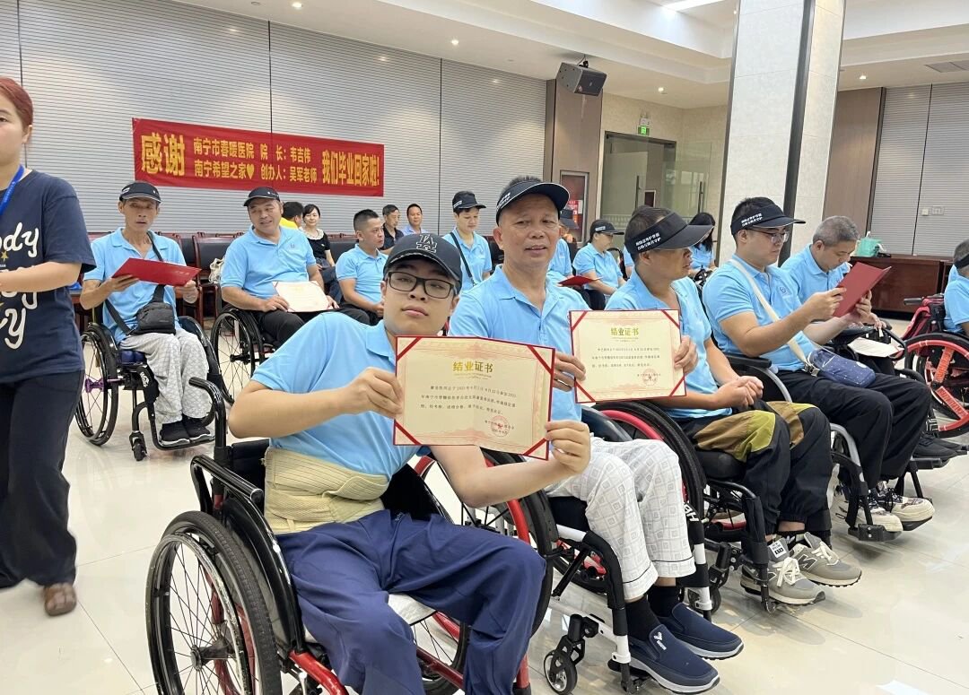 南宁春暖康复医院韦吉伟院长在随后的致辞中向顺利完成学业的学员表示祝贺。他提到,培训班的举办体现了医院致力于脊髓损伤者全面康复的使命担当,希望学员们继续保持积极心态,巩固康复成果,活出精彩人生。韦院长表示,医院将持续优化康复服务体系,为伤友回归社会提供更多支持。