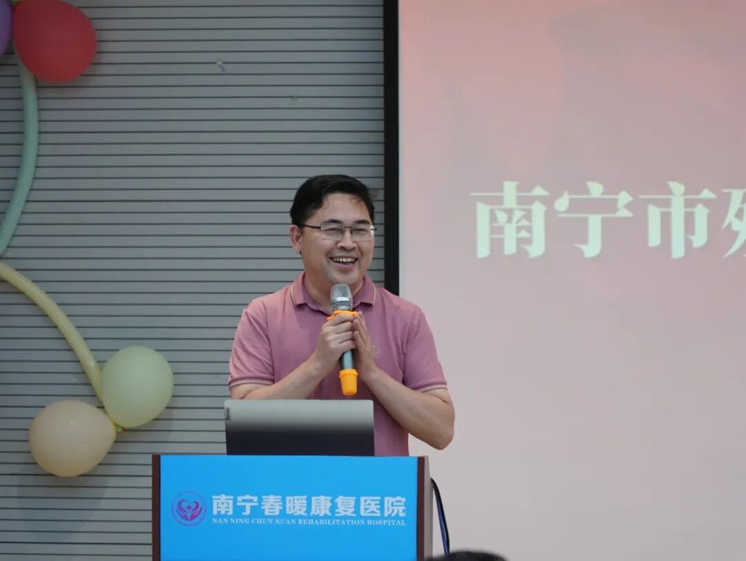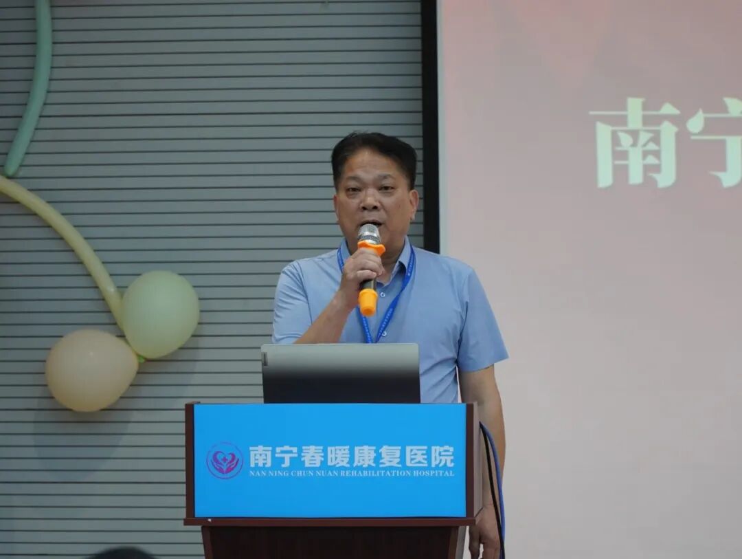 南宁春暖康复医院院长韦吉伟致欢迎辞。他表示,桂渝两地以“三月三”为契机共办残健共融活动,是民族文化交融与铸牢中华民族共同体意识的生动实践。医院取名“春暖”寓意传递温暖与希望,期待通过“桂渝两地希望之家爱心联盟”深化合作,为脊髓损伤者康复探索新路径,并预祝活动圆满成功。