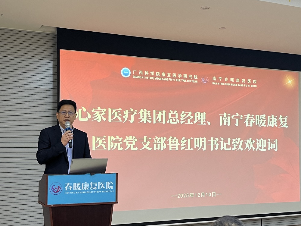 心家医疗集团总经理、南宁春暖康复医院党支部书记鲁红明在致辞中,瑞康医院作为全国重点中西医结合医院,拥有全区最强大的中西医结合专家阵容,有着雄厚的科研实力和卓越的品牌声誉。通过医联体建设,双方将在专家资源共享、人才培养、学科建设等领域实现深度合作,共同构建顺畅的双向转诊体系,推动区域康复服务能力整体提升。